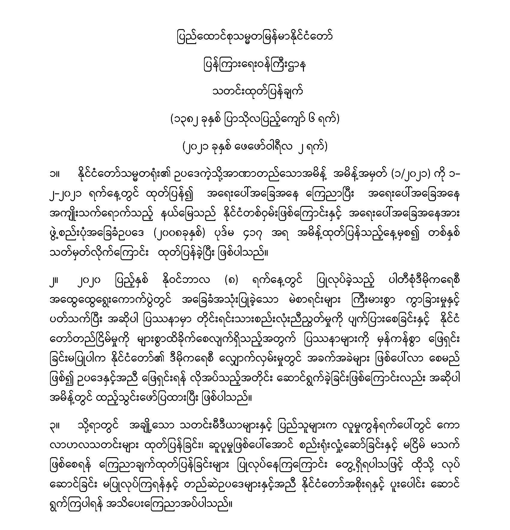 နိုင်ငံတော်အစိုးရ၏ ကြေညာချက်များ