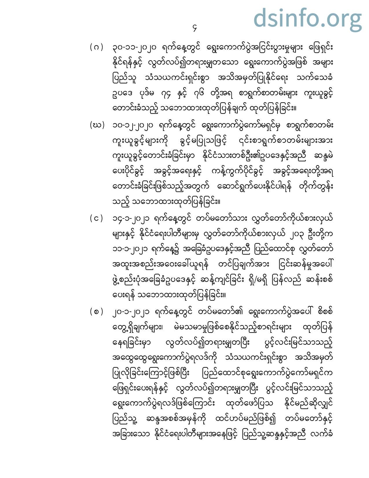 နိုင်ငံတော်အစိုးရ၏ ကြေညာချက်များ