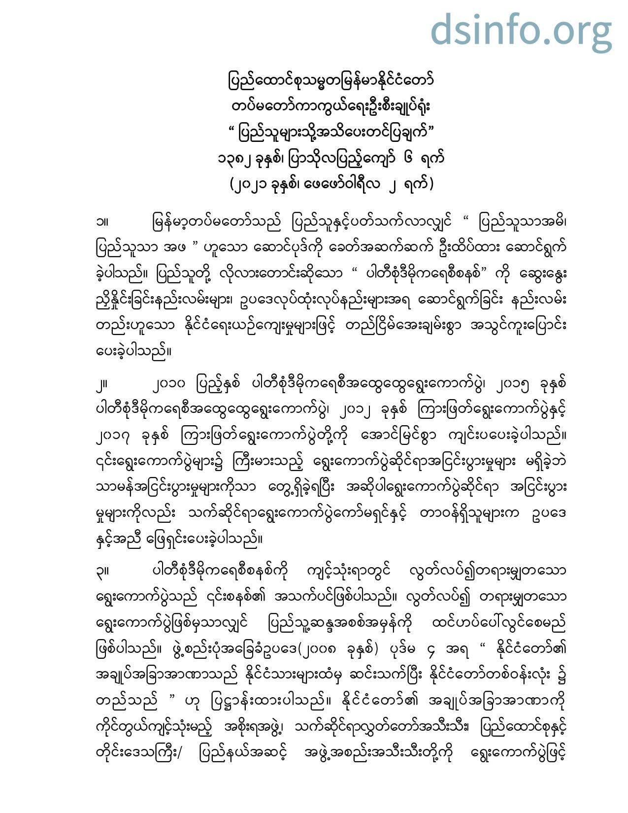 “ ပြည်သူများသို့အသိပေးတင်ပြချက်”