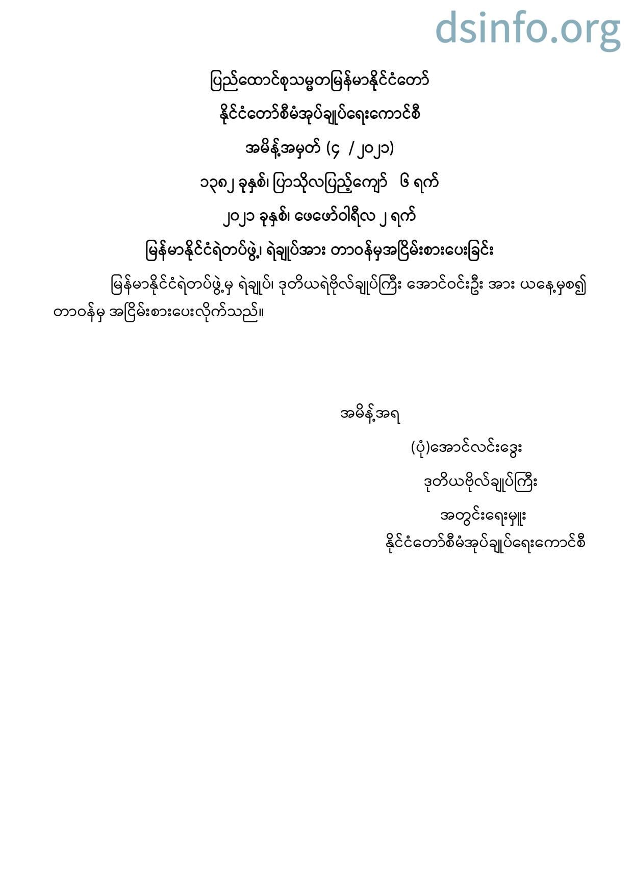 ဝန်ကြီးဌာန ကြေညာချက်များ