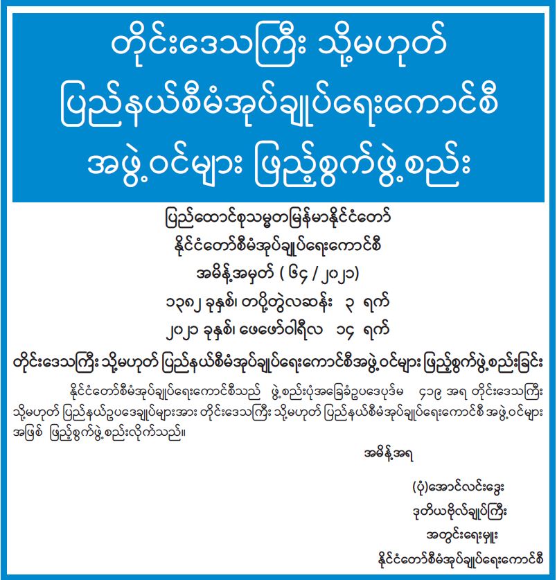 တိုင်းဒေသကြီး သို့မဟုတ် ပြည်နယ်စီမံအုပ်ချုပ်ရေးကောင်စီအဖွဲ့ဝင်များ ဖြည့်စွက်ဖွဲ့စည်းခြင်း