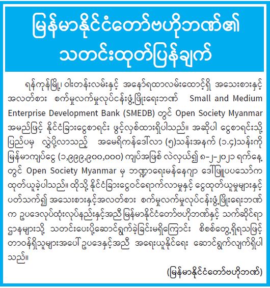 မြန်မာနိုင်ငံတော် ဗဟိုဘဏ်၏ သတင်းထုတ်ပြန်ချက်