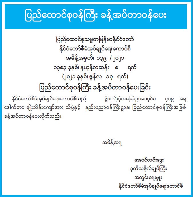 ပြည်ထောင်စုဝန်ကြီး ခန့်အပ်တာဝန်ပေး