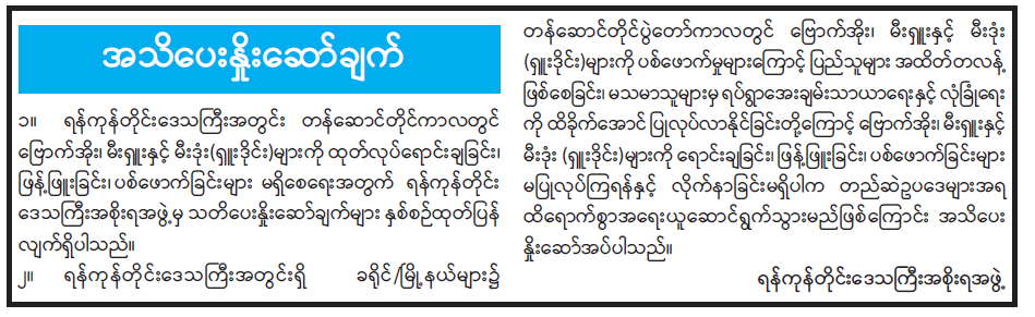 ဝန်ကြီးဌာန ကြေညာချက်များ