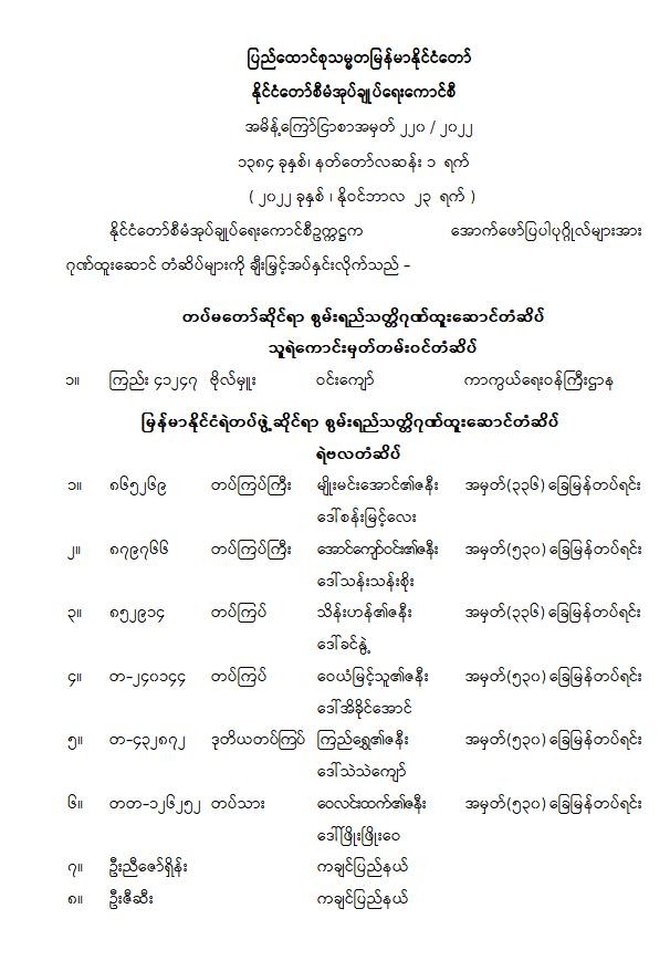 ပြည်ထောင်စုသမ္မတမြန်မာနိုင်ငံတော် နိုင်ငံတော်စီမံအုပ်ချုပ်ရေးကောင်စီ အမိန့်ကြော်ငြာစာအမှတ် ၂၂၀ /၂၀၂၂ 11/23/2022