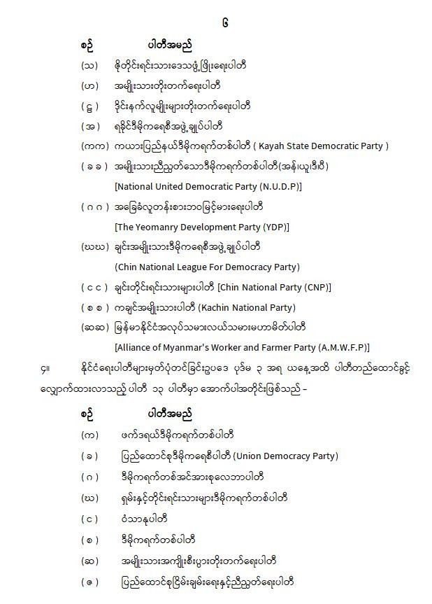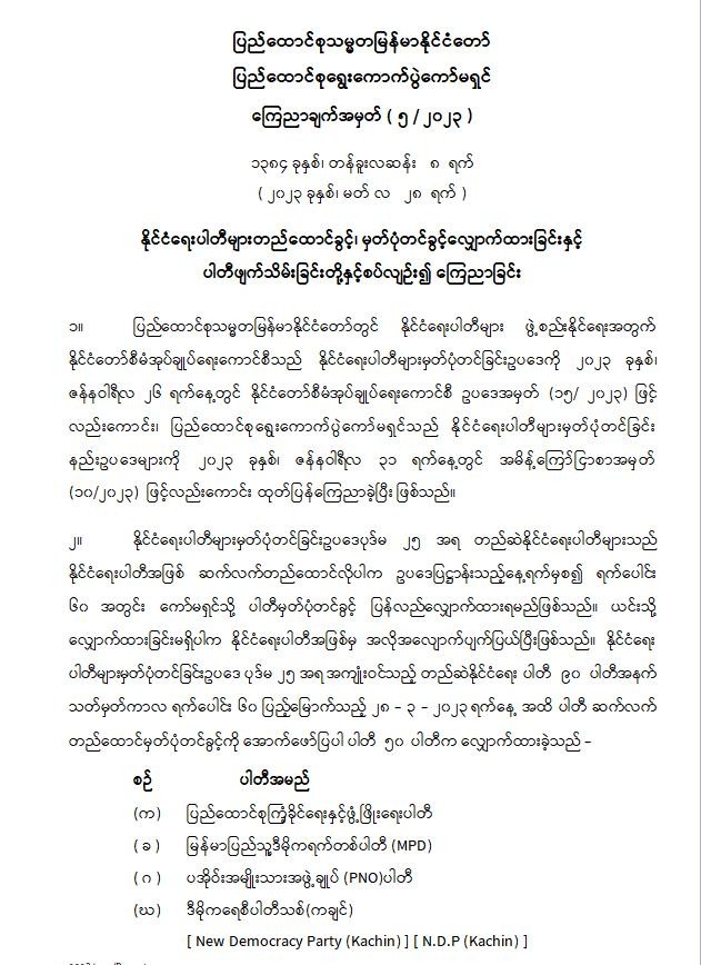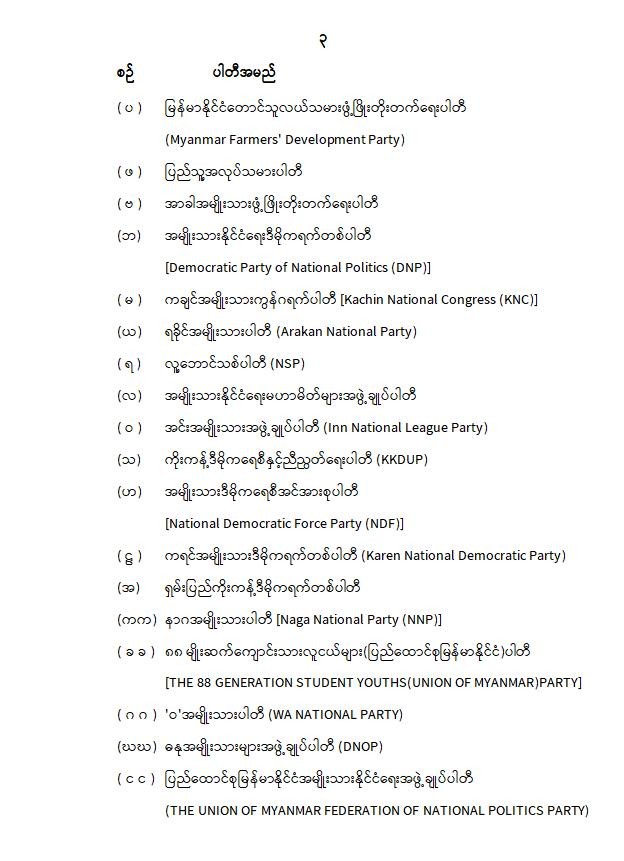 နိုင်ငံရေးပါတီများတည်ထောင်ခွင့်၊ မှတ်ပုံတင်ခွင့်လျှောက်ထားခြင်းနှင့် ပါတီဖျက်သိမ်းခြင်းတို့နှင့်စပ်လျဉ်း၍ ကြေညာခြင်း 03/28/2023