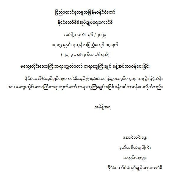ဝန်ကြီးဌာန ကြေညာချက်များ
