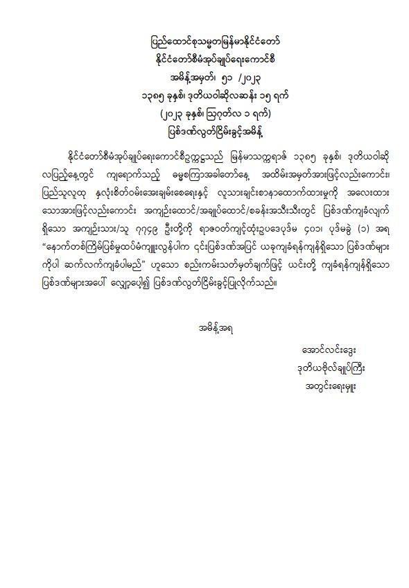 အမိန့်အမှတ်၊ ၅၁ /၂၀၂၃