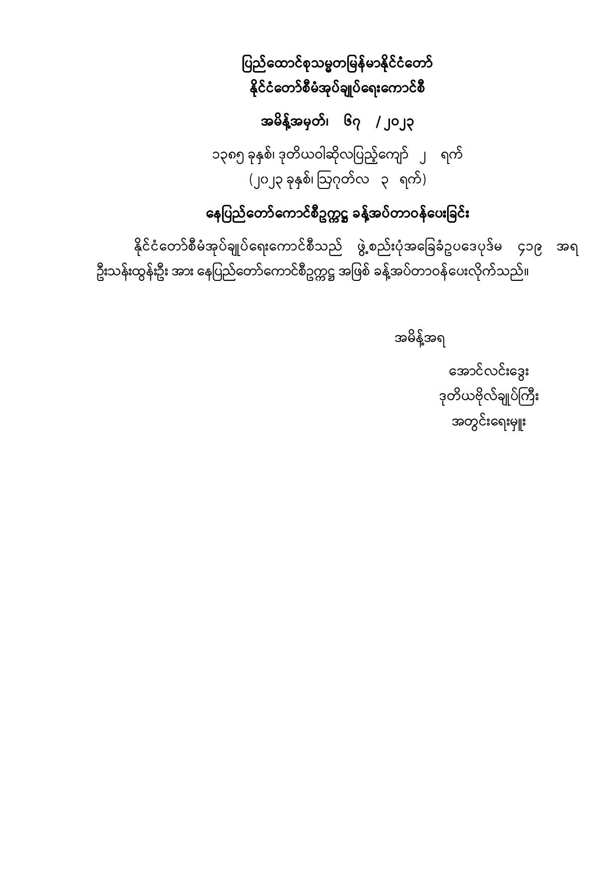 နေပြည်တော်ကောင်စီ ဥက္ကဋ္ဌ ခန့်အပ်တာဝန်ပေးခြင်း