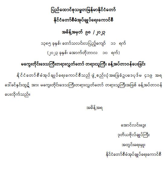 ဝန်ကြီးဌာန ကြေညာချက်များ