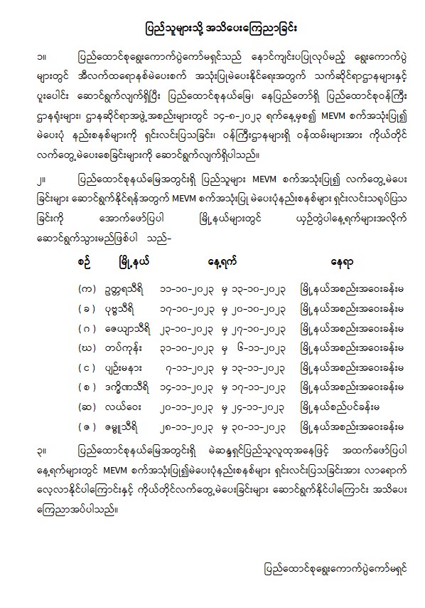 ပြည်သူများသို့ အသိပေးကြေညာခြင်း