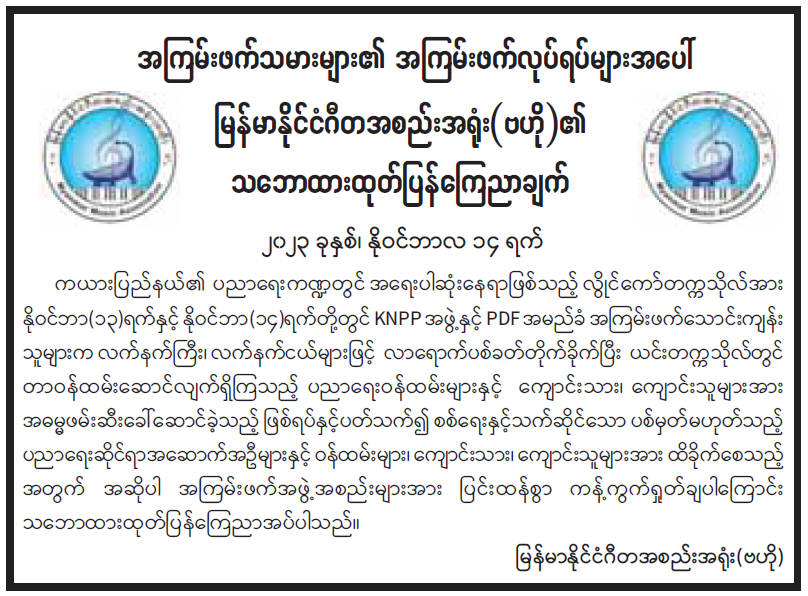 အကြမ်းဖက်သမားများ၏ လုပ်ရပ်များအပေါ် မြန်မာနိုင်ငံဂီတအစည်းအရုံး(ဗဟို)၏ သဘောထားထုတ်ပြန်ကြေညာချက် 11/15/2023 အကြမ်းဖက်သမားများ၏ လုပ်ရပ်များအပေါ် မြန်မာနိုင်ငံဂီတအစည်းအရုံး(ဗဟို)၏ သဘောထားထုတ်ပြန်ကြေညာချက်