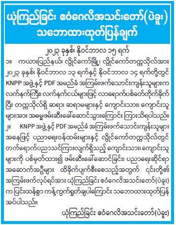 ယုံကြည်ခြင်း ဧဝံဂေလိအသင်းတော်(ပဲခူး) သဘောထားထုတ်ပြန်ချက်