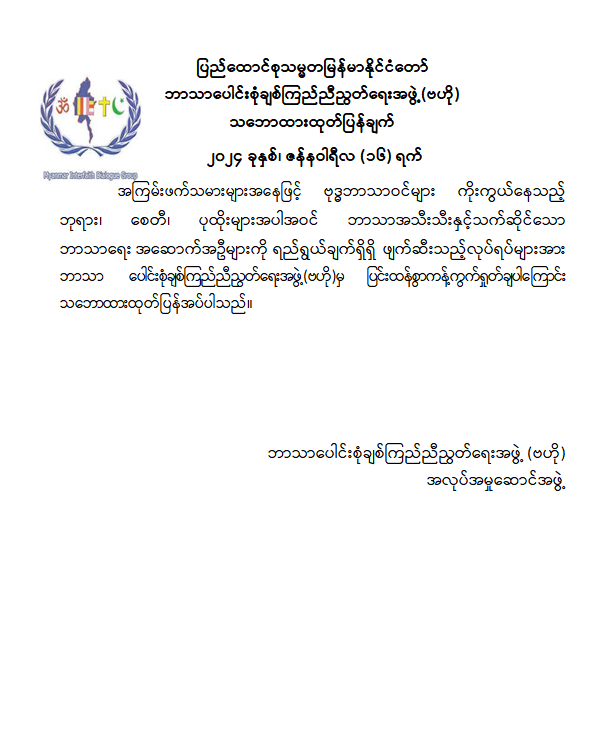 ပြည်ထောင်စုသမ္မတမြန်မာနိုင်ငံတော် ဘာသာပေါင်းစုံချစ်ကြည်ညီညွတ်ရေးအဖွဲ့(ဗဟို) သဘောထားထုတ်ပြန်ချက်