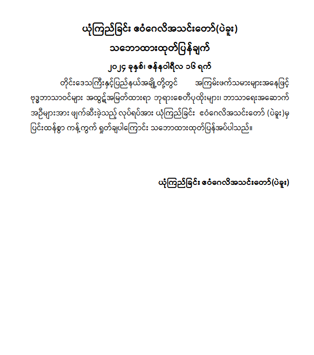 ယုံကြည်ခြင်း ဧဝံဂေလိအသင်းတော် (ပဲခူး) သဘောထားထုတ်ပြန်ချက်