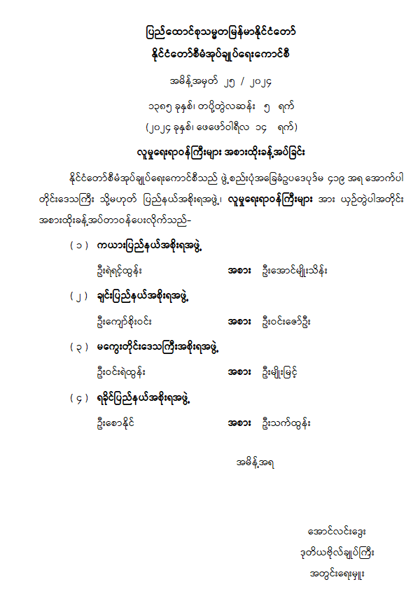 လူမှုရေးရာဝန်ကြီးများ အစားထိုးခန့်အပ်ခြင်း