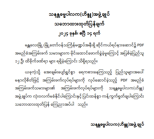သနန္တနဓမ္မပါလက(ဟိန္ဒူ)အဖွဲ့ချုပ် သဘောထားထုတ်ပြန်ချက်