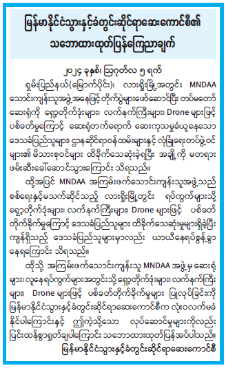 မြန်မာနိုင်ငံသွားနှင့်ခံတွင်းဆိုင်ရာဆေးကောင်စီ၏ သဘောထားထုတ်ပြန်ကြေညာချက်