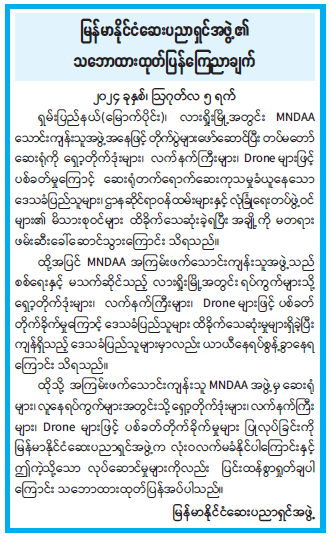 နိုင်ငံတော်အစိုးရ၏ ကြေညာချက်များ