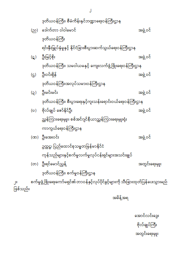 ဝန်ကြီးဌာန ကြေညာချက်များ