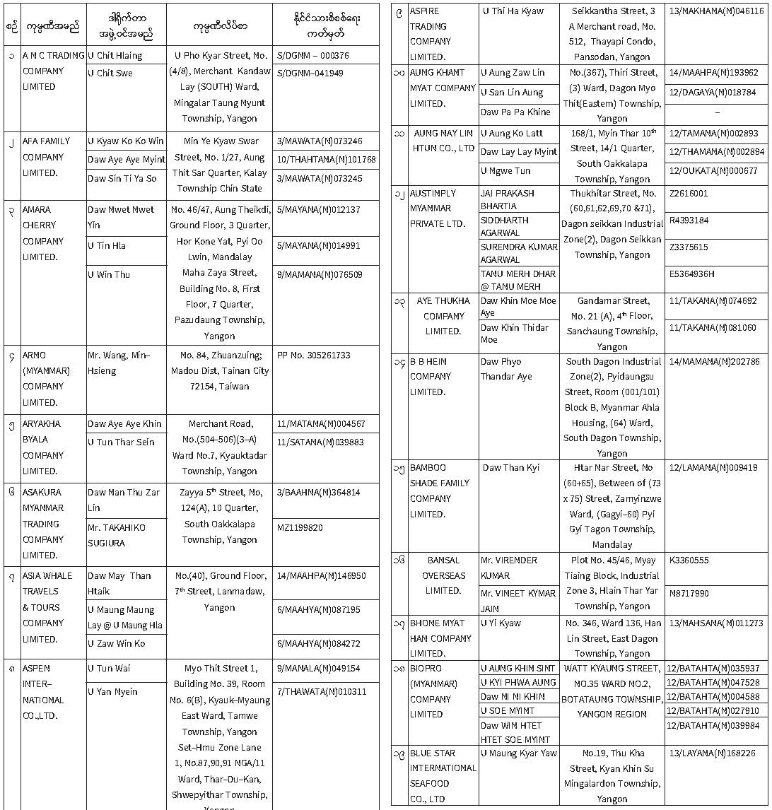 ၄။ (၂၃-၆-၂ဝ၂၅) ရက်နေ့ စိစစ်ချက်အရ ၂ဝ၁၆ ခုနှစ်မှ ၂ဝ၂ဝ ပြည့်နှစ် အတွင်း ပို့ကုန်တင်ပို့ခဲ့ပြီး ပို့ကုန်ရငွေပြန်လည်ဝင်ရောက်ရန်ကျန်ရှိသည့် ပူးတွဲပါကုမ္ပဏီ (၁၉၇) ခုသည် နိုင်ငံခြားသုံးငွေ စီမံခန့်ခွဲမှုဥပဒေ၊ စည်းမျဉ်း၊ အမိန့်ကြော်ငြာစာတို့ပါ သတ်မှတ်ချက်များအား လိုက်နာ ခြင်းမရှိသဖြင့် ကုမ္ပဏီနှင့်ကုမ္ပဏီ၏ ဒါရိုက်တာအဖွဲ့ဝင်များအား အမည်မည်းစာရင်း ထည့်သွင်းကြောင်း ကြေညာပါသည်။
