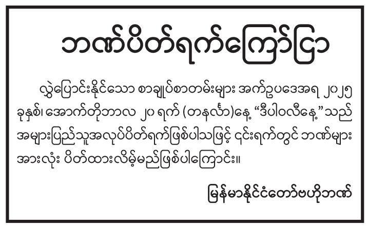 ဘဏ်ပိတ်ရက်ကြော်ငြာ