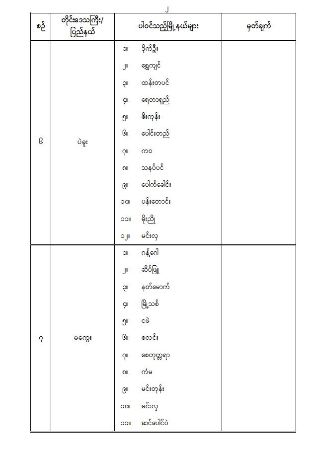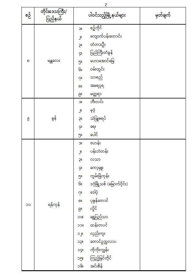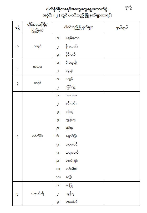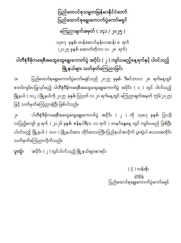 ပါတီစုံဒီမိုကရေစီအထွေထွေရွေးကောက်ပွဲအပိုင်း ( ၂ ) ကျင်းပမည့်နေ့ရက်နှင့် ပါဝင်သည့်မြို့နယ်များ သတ်မှတ်ကြေညာခြင်း