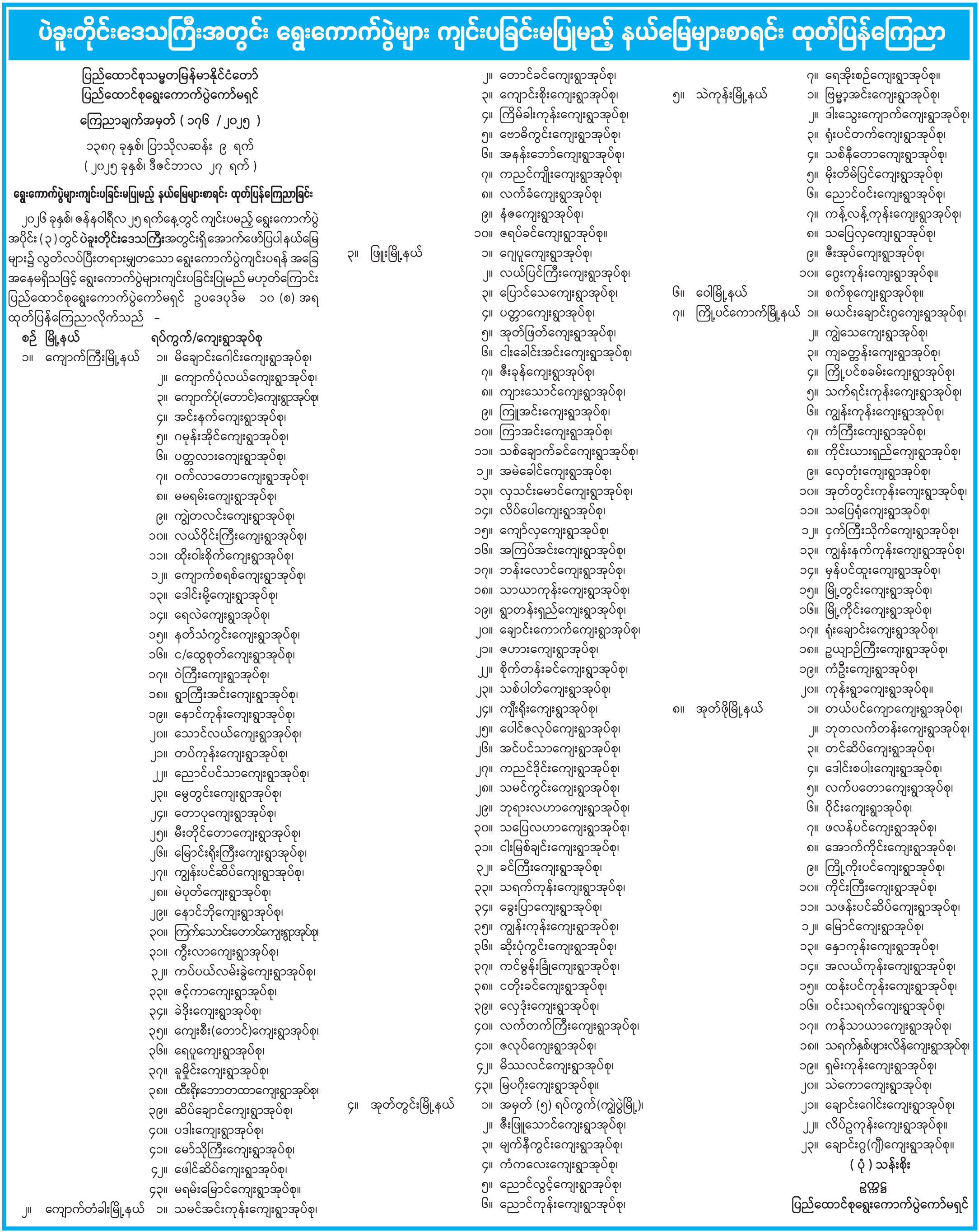ပဲခူးတိုင်းဒေသကြီးအတွင်း ရွေးကောက်ပွဲများကျင်းပခြင်းမပြုမည့် နယ်မြေများစာရင်း ထုတ်ပြန်ကြေညာ