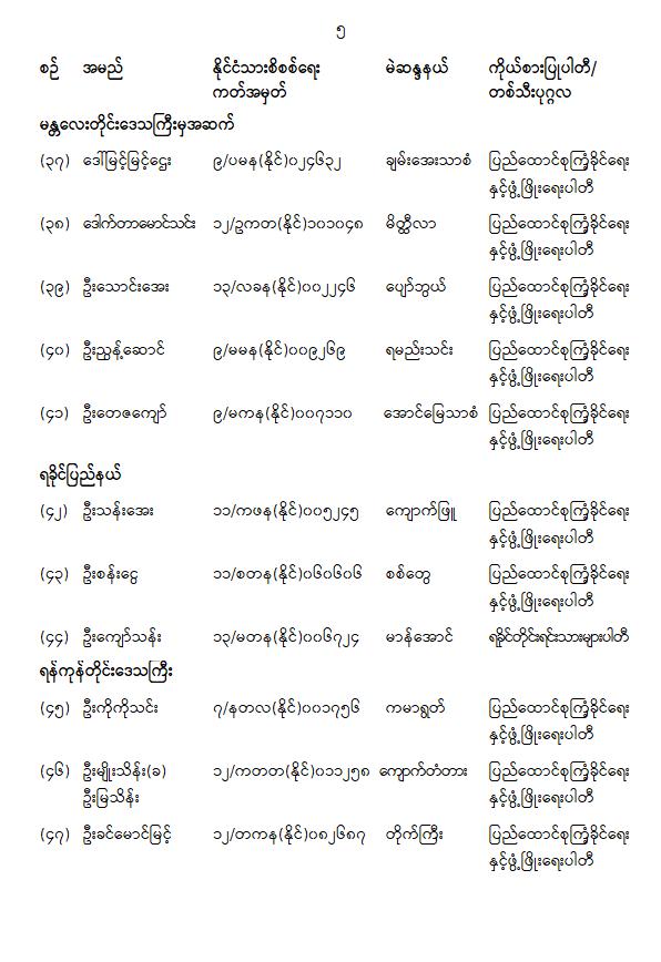 ပြည်သူ့လွှတ်တော်ကိုယ်စားလှယ်အဖြစ် ရွေးကောက်တင်မြှောက်ခံရသူများ အမည်စာရင်းကြေညာခြင်း