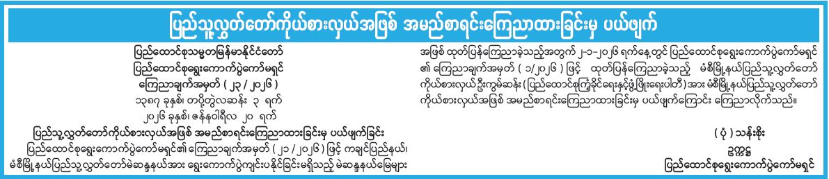 ပြည်သူ့လွှတ်တော်ကိုယ်စားလှယ်အဖြစ် အမည်စာရင်းကြေညာထားခြင်းမှ ပယ်ဖျက်