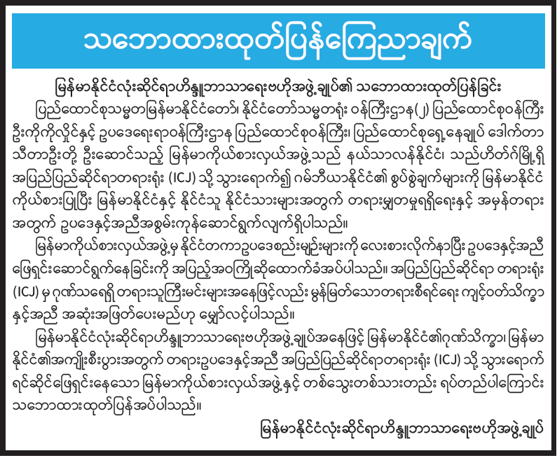 မြန်မာနိုင်ငံလုံးဆိုင်ရာဟိန္ဒူဘာသာရေးဗဟိုအဖွဲ့ချုပ်၏ သဘောထားထုတ်ပြန်ခြင်း