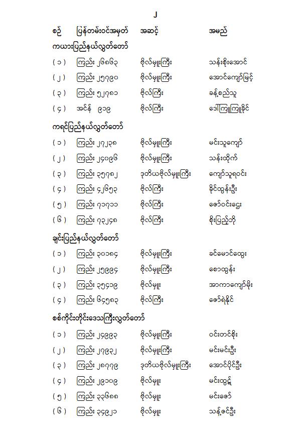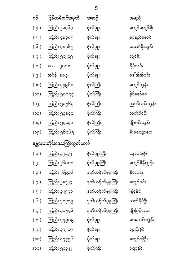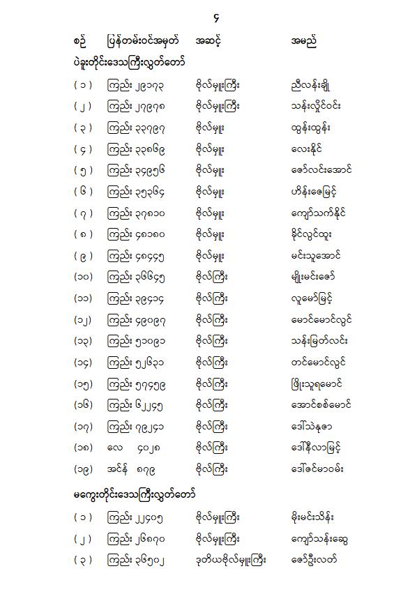 တပ်မတော်သား တိုင်းဒေသကြီးလွှတ်တော် သို့မဟုတ် ပြည်နယ်လွှတ်တော် ကိုယ်စားလှယ်အမည်စာရင်းကြေညာခြင်း