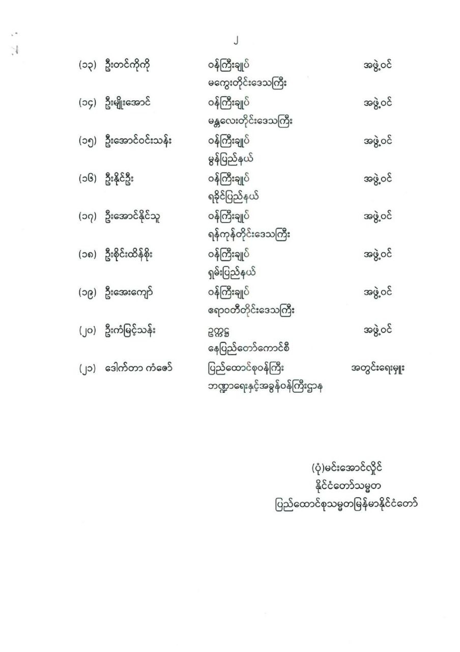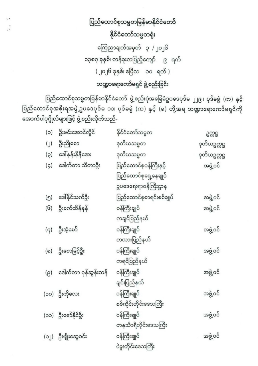 ဝန်ကြီးဌာန ကြေညာချက်များ