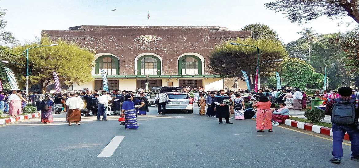 ပြီးခဲ့တဲ့ ဒီဇင်ဘာလမှာ ကျောင်းထဲကို ရောက်သေးတယ်။ အပြောင်းအလဲမရှိပေမယ့် သစ်ပင်ခုတ် တယ်ကြားလို့ သစ်ပုတ်ပင်ကြီး ကျန်သေးသလားဆိုပြီး သူငယ်ချင်း အချင်းချင်း နောက်ပြောင်ရင်း ရောက်ခဲ့သေးတယ်။ ကျောင်းကြီးက စိမ်းလန်းစိုပြည်တုန်းပါပဲ။ အီကို ကင်တင်န်းကိုသွားတဲ့ စင်္ကြံလမ်း ကတော့ ကျွန်တော်တို့ခေတ်လို ဟာလာ ဟင်းလင်းကြီး မဟုတ်တော့ဘူး။ တစ်ခုတော့ ရှိမယ်။ ရန်ကုန်တက္ကသိုလ်ဝင်းထဲမှာ တံတိုင်းတွေ ခတ်တာတော့ ခံစားလို့မရဘူး။ တက္ကသိုလ် အပန်းဖြေရိပ်သာ နောက်မှာ ဝင်းတံတိုင်းတွေ ခတ်တာကိုတော့ သဘောမကျကြဘူး။ ရန်ကုန် တက္ကသိုလ်ကြီးအတွင်းမှာ လွတ်လွတ်လပ်လပ် သွားလာလို့ရအောင် ယခင်ထဲက ဝင်းခတ်တာ မရှိခဲ့ဘူး။ ကြုံလို့ ပြောပြတာပါ။ လူမှုကွန်ရက်တွေမှာလည်း တွေ့ရမှာပါ။ ရန်ကုန်တက္ကသိုလ်ကြီး နှစ်ရာပြည့်ပွဲဟာ တစ်ကြိမ်ပဲကြုံဆုံရတဲ့ ပွဲဖြစ်တဲ့အပြင် အစဉ်အလာကြီးမားတဲ့ ကျောင်းတော်ကြီး ဖြစ်တာကြောင့် အားလုံး ဝိုင်းဝန်းပြီး ကဏ္ဍနယ်ပယ်အသီးသီးကနေ ပူးပေါင်းမှုနဲ့ သမိုင်းမှတ်တိုင် စိုက်ထူစေလို ပါကြောင်း ဆန္ဒပြုလိုက်ပါတယ်။