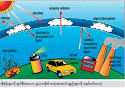 အောက်ဆီဂျင်အက်တမ် သုံးခုပါဝင်သော မော်လီကျူး တစ်ခုဖြစ်သည့် အိုဇုန်းဓာတ်ငွေ့သည် အပြာရောင် ဖျော့ဖျော့ရှိပြီး အလွန်အနံ့ပြင်း၍ မြေပြင်ပေါ်တွင် တည်ရှိပါက လေထုညစ်ညမ်းမှု ဖြစ်စေသည်။ စက်ရုံ အလုပ်ရုံများ၊ လျှပ်စစ်ဓာတ်အား ထုတ်လုပ်သည့် စက်ရုံများ၊ မော်တော်ယာဉ်များမှ ထုတ်လွှတ်သော ဓာတ်ဆီငွေ့များတွင် အဓိက ပါဝင်သည့် နိုက်ထရိုဂျင်နှင့် အောက်ဆီဂျင်ဒြပ်ပေါင်းများ (Oxide of Nitrogen)နှင့် အငွေ့ပြန်လွယ်သော အော်ဂဲနစ် G8cule:(Volatile Organic Compound-VOC)ąp: နေရောင်ခြည်နှင့်ဓာတ်ပြု၍ ဖြစ်ပေါ်လာရသည့် အိုဇုန်း ဓာတ်ငွေ့များသည် ကမ္ဘာ့မြေမျက်နှာပြင်မှ ငါးမိုင်အတွင်းရှိ ထရိုပိုစဖီးယား(Troposphere)အလွှာတွင် တည်ရှိနေပါသည်။
