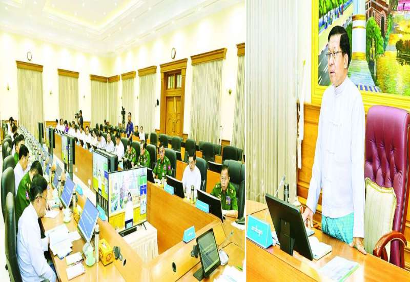 ပြည်ထောင်စုသမ္မတမြန်မာနိုင်ငံတော် နိုင်ငံတော်လုံခြုံရေးနှင့် အေးချမ်းသာယာရေးကော်မရှင်နှင့် ပြည်ထောင်စုအစိုးရအဖွဲ့တို့၏ လုပ်ငန်းညှိနှိုင်းအစည်းအဝေးကို ယနေ့နံနက်ပိုင်းတွင် ကျင်းပပြုလုပ်ရာ ပြည်ထောင်စုသမ္မတမြန်မာနိုင်ငံတော် ယာယီသမ္မတ နိုင်ငံတော်လုံခြုံရေးနှင့် အေးချမ်းသာသာယာရေးကော်မရှင်ဥက္ကဋ္ဌ ဗိုလ်ချုပ်မှူးကြီး မင်းအောင်လှိုင် တက်ရောက်အမှာစကားပြောကြားသည်။