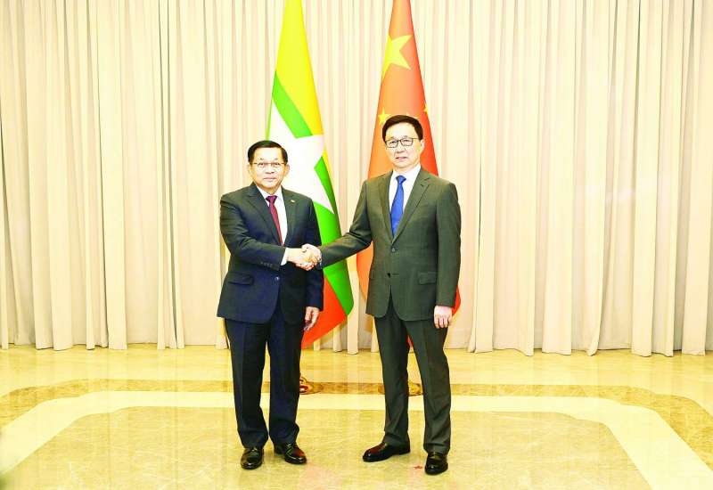 တရုတ်ပြည်သူ့သမ္မတနိုင်ငံ ပေကျင်းမြို့တွင် အလုပ်သဘောခရီးရောက်ရှိနေသည့် ပြည်ထောင်စုသမ္မတမြန်မာနိုင်ငံတော် ယာယီသမ္မတ နိုင်ငံတော်လုံခြုံရေးနှင့် အေးချမ်းသာယာရေးကော်မရှင်ဥက္ကဋ္ဌ ဗိုလ်ချုပ်မှူးကြီး မင်းအောင်လှိုင်သည် ယနေ့ဒေသစံတော်ချိန် နေလယ် ၁၂ နာရီတွင် ကျောက်ယွိထိုင်နိုင်ငံတော်ဧည့်ဂေဟာ၌ တရုတ်ပြည်သူ့သမ္မတနိုင်ငံ၊ ဒုတိယသမ္မတ H.E. Mr. Han Zheng နှင့် တွေ့ဆုံဆွေးနွေးသည်။