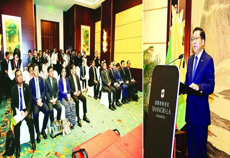 မြန်မာ-တရုတ် စီးပွားရေးပူးပေါင်းဆောင်ရွက်မှုမြှင့်တင်ရေး ဒုတိယအကြိမ်တွေ့ဆုံပွဲကို ယနေ့ဒေသစံတော်ချိန် မွန်းလွဲ ၁ နာရီတွင် တရုတ်ပြည်သူ့သမ္မတနိုင်ငံ စီချွမ်ပြည်နယ် ချန်ဒူးမြို့ရှိ Shangri La ဟိုတယ်၌ ကျင်းပပြုလုပ်ရာ ပြည်ထောင်စုသမ္မတမြန်မာနိုင်ငံတော် ယာယီသမ္မတ နိုင်ငံတော်လုံခြုံရေးနှင့်အေးချမ်းသာယာရေးကော်မရှင်ဥက္ကဋ္ဌ ဗိုလ်ချုပ်မှူးကြီး မင်းအောင်လှိုင် တက်ရောက်အမှာစကားပြောကြားသည်။