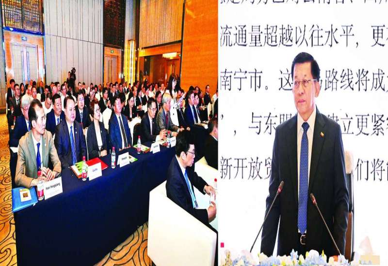 မြန်မာ-တရုတ် စီးပွားရေးပူးပေါင်းဆောင်ရွက်မှုမြှင့်တင်ရေးတွေ့ဆုံပွဲကို ယနေ့ဒေသစံတော်ချိန် နံနက် ၉ နာရီတွင် တရုတ်ပြည်သူ့သမ္မတနိုင်ငံ တီယန်ကျင်းမြို့ Tangla Hotel ၌ ကျင်းပပြုလုပ်ရာ ပြည်ထောင်စုသမ္မတ မြန်မာနိုင်ငံတော် ယာယီသမ္မတ နိုင်ငံတော်လုံခြုံရေးနှင့် အေးချမ်းသာယာရေးကော်မရှင်ဥက္ကဋ္ဌ ဗိုလ်ချုပ်မှူးကြီး မင်းအောင်လှိုင် တက်ရောက်အမှာစကားပြောကြားသည်။