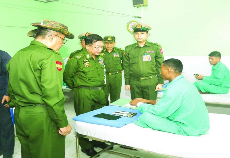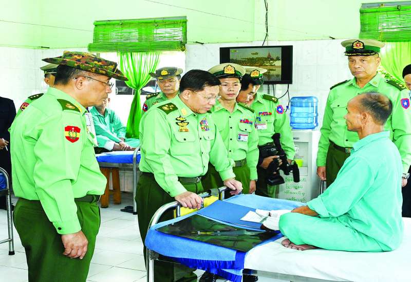 နိုင်ငံတော်စီမံအုပ်ချုပ်ရေးကောင်စီဥက္ကဋ္ဌ တပ်မတော်ကာကွယ်ရေးဦးစီးချုပ် ဗိုလ်ချုပ်မှူးကြီး မင်းအောင်လှိုင်သည် နိုင်ငံတော်စီမံအုပ်ချုပ်ရေးကောင်စီအဖွဲ့ဝင် ညှိနှိုင်းကွပ်ကဲရေးမှူး(ကြည်း၊ ရေ၊ လေ) ဗိုလ်ချုပ်ကြီး မောင်မောင်အေး၊ ကာကွယ်ရေးဦးစီးချုပ်(ရေ) ဒုတိယဗိုလ်ချုပ်ကြီး ထိန်ဝင်း၊ ကာကွယ်ရေးဦးစီးချုပ်(လေ) ဗိုလ်ချုပ်ကြီးထွန်းအောင်၊ ပြည်ထောင်စုအဆင့်ပုဂ္ဂိုလ်များ၊ ကာကွယ်ရေးဦးစီးချုပ်ရုံးမှ အဆင့်မြင့်တပ်မတော်အရာရှိကြီးများနှင့် တာဝန်ရှိသူများလိုက်ပါ၍ ယနေ့နံနက်ပိုင်းတွင် အလယ်ပိုင်းတိုင်းစစ်ဌာနချုပ်နယ်မြေအတွင်း နယ်မြေတည်ငြိမ်အေးချမ်းရေးဆိုင်ရာ ဆောင်ရွက်ထားရှိမှုများကို စစ်ဆေးသည်။