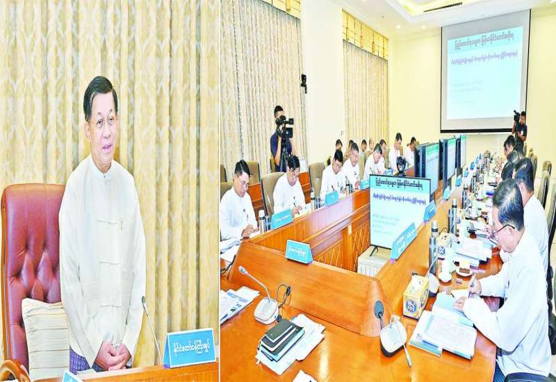 သီးနှံတိုးချဲ့စိုက်ပျိုးရေး၊ ဝါအထွက်နှုန်းတိုးတက်ရေးနှင့် မွေးမြူရေးလုပ်ငန်းများတိုးတက်ရေး ညှိနှိုင်းဆွေးနွေးပွဲကို ယနေ့မွန်းလွဲပိုင်းတွင် နေပြည်တော်ရှိ နိုင်ငံတော်စီမံအုပ်ချုပ်ရေးကောင်စီဥက္ကဋ္ဌရုံး အစည်းအဝေးခန်းမ၌ ကျင်းပပြုလုပ်ရာ နိုင်ငံတော်စီမံအုပ်ချုပ်ရေးကောင်စီဥက္ကဋ္ဌ နိုင်ငံတော်ဝန်ကြီးချုပ် ဗိုလ်ချုပ်မှူးကြီး မင်းအောင်လှိုင် တက်ရောက်ဆွေးနွေးသည်။