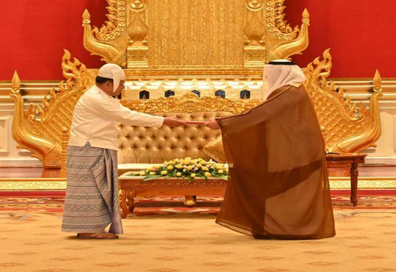 နိုင်ငံတော်စီမံအုပ်ချုပ်ရေးကောင်စီဥက္ကဋ္ဌ နိုင်ငံတော်ဝန်ကြီးချုပ် ဗိုလ်ချုပ်မှူးကြီး မင်းအောင်လှိုင်ထံ မြန်မာနိုင်ငံဆိုင်ရာ အာရပ်စော်ဘွားများပြည်ထောင်စုနိုင်ငံ (UAE) သံအမတ်ကြီးအဖြစ် ခန့်အပ်ရန် သဘောတူညီပြီးဖြစ်သော သံအမတ်ကြီး H.E. Mr. Mutaz Abdullah Abdulijaleel Mohamed Al Faheem သည် ယနေ့နံနက် ၁၀ နာရီတွင် နေပြည်တော်ရှိ နိုင်ငံတော်စီမံအုပ်ချုပ်ရေးကောင်စီဥက္ကဋ္ဌရုံး၊ သံတမန်ဆောင်ဧည့်ခန်းမ၌ ၎င်း၏သံအမတ်ခန့်အပ်လွှာကို ပေးအပ်သည်။