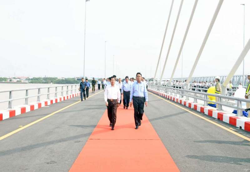 ရန်ကုန်တိုင်းဒေသကြီးအတွင်းရှိ ပဲခူးမြစ်ကူးတံတား (သန်လျင်တံတားအမှတ်-၃) ဖွင့်ပွဲအခမ်းအနားကို ယနေ့နံနက်ပိုင်းတွင်ကျင်းပပြုလုပ်ရာ နိုင်ငံတော်စီမံအုပ်ချုပ်ရေးကောင်စီဥက္ကဋ္ဌ နိုင်ငံတော်ဝန်ကြီးချုပ် ဗိုလ်ချုပ်မှူးကြီး မင်းအောင်လှိုင် တက်ရောက်ချီးမြှင့်သည်။