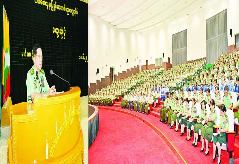 နည်းပြများအနေဖြင့် မိမိတို့တတ်မြောက်သင်ကြားထားသည့်၊ စာပေပညာ၊ စစ်ပညာများကို ဖြတ်သန်းခဲ့ရသည့် အတွေ့အကြုံများနှင့် ပေါင်းစပ်ချိန်ထိုး၍ စနစ်တကျ သင်ကြားလေ့ကျင့်ပေးပြီး စိတ်ဓာတ်ခိုင်မာကောင်းမွန်သည့် နိုင်ငံတော်နှင့် တပ်မတော်က အားထားရသည့်၊ ပြည်သူက အားကိုးရသည့် အနာဂတ်ခေါင်းဆောင်များကို မွေးထုတ်ပေးနိုင်ရမည်ဖြစ်သကဲ့သို့ သင်တန်းသား အရာရှိငယ်များ၊ ဗိုလ်လောင်းများအနေဖြင့်လည်း စိတ်ဓာတ်ခံယူချက်ကောင်းစွာဖြင့် သင်ယူလေ့လာ၍ နိုင်ငံတော်နှင့် တပ်မတော်ကို ပြန်လည်အကျိုးပြုနိုင်ရမည်ဖြစ်ကြောင်း နိုင်ငံတော်စီမံအုပ်ချုပ်ရေးကောင်စီဥက္ကဋ္ဌ တပ်မတော်ကာကွယ်ရေး ဦးစီးချုပ် ဗိုလ်ချုပ်မှူးကြီး မင်းအောင်လှိုင်က ယနေ့နံနက်ပိုင်းတွင် စစ်တက္ကသိုလ်မှ နည်းပြအရာရှိကြီးများ၊ ကထိကအရာရှိကြီးများ၊ ဆရာကြီး၊ ဆရာမကြီးများ၊ သန္ဓေအရာရှိများ၊ သင်တန်းသား၊ သင်တန်းသူများနှင့် ဗိုလ်လောင်းများအား စစ်တက္ကသိုလ်၊ ဘွဲ့နှင်းသဘင်ခန်းမ၌ တွေ့ဆုံအမှာစကားပြောကြားစဉ် ထည့်သွင်းပြောကြားသည်။