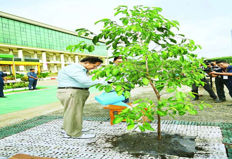 ပြည်ထောင်စုနယ်မြေ၊ နေပြည်တော်၊ ၂၀၂၄ ခုနှစ်၊ ပထမအကြိမ် မိုးရာသီသစ်ပင်စိုက်ပျိုးပွဲ အခမ်းအနားကို ယနေ့နံနက်ပိုင်းတွင် ပြည်ထောင်စုနယ်မြေ နေပြည်တော်ရှိ Naypyitaw State Academy ပရိဝုဏ်အတွင်း၌ကျင်းပရာ နိုင်ငံတော်စီမံအုပ်ချုပ်ရေးကောင်စီဥက္ကဋ္ဌ နိုင်ငံတော်ဝန်ကြီးချုပ် ဗိုလ်ချုပ်မှူးကြီးမင်းအောင်လှိုင် တက်ရောက်၍ ခရေပျိုးပင်ကို ဦးဆောင်စိုက်ပျိုးပေးသည်။