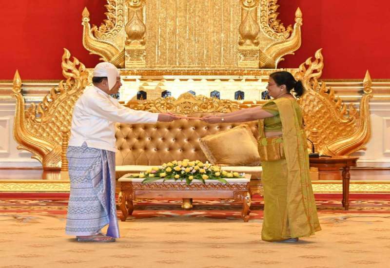 နိုင်ငံတော်စီမံအုပ်ချုပ်ရေးကောင်စီဥက္ကဋ္ဌ နိုင်ငံတော်ဝန်ကြီးချုပ် ဗိုလ်ချုပ်မှူးကြီး မင်းအောင်လှိုင်ထံ မြန်မာနိုင်ငံဆိုင်ရာ သီရိလင်္ကာနိုင်ငံ သံအမတ်ကြီးအဖြစ် ခန့်အပ်ရန် သဘောတူညီပြီးဖြစ်သော သံအမတ်ကြီး H.E. Mrs. Ponnamperuma Arachige Prabashini Ponnamperuma သည် ယနေ့နံနက် ၁၀ နာရီ ၄၅ မိနစ်တွင် နေပြည်တော်ရှိ နိုင်ငံတော်စီမံအုပ်ချုပ်ရေးကောင်စီဥက္ကဋ္ဌရုံး၊ သံတမန်ဆောင်ဧည့်ခန်းမ၌ ၎င်း၏သံအမတ်ခန့်အပ်လွှာကို ပေးအပ်သည်။