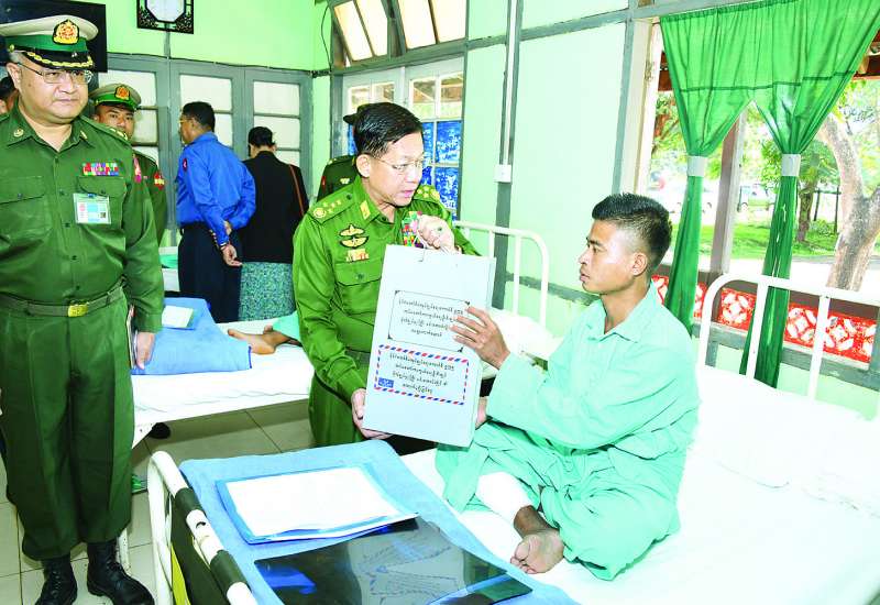 နိုင်ငံတော်စီမံအုပ်ချုပ်ရေးကောင်စီဥက္ကဋ္ဌ တပ်မတော်ကာကွယ်ရေးဦးစီးချုပ် ဗိုလ်ချုပ်မှူးကြီး မင်းအောင်လှိုင်သည် ဇနီး ဒေါ်ကြူကြူလှ၊ ညှိနှိုင်းကွပ်ကဲရေးမှူး (ကြည်း၊ ရေ၊ လေ) ဗိုလ်ချုပ်ကြီး မောင်မောင်အေးနှင့် ဇနီး၊ ကာကွယ်ရေးဦးစီးချုပ် (ရေ) ဗိုလ်ချုပ်ကြီး မိုးအောင်နှင့် ဇနီး၊ ကာကွယ်ရေးဦးစီးချုပ် (လေ) ဗိုလ်ချုပ်ကြီး ထွန်းအောင်နှင့် ဇနီး၊ ကာကွယ်ရေးဦးစီးချုပ်ရုံးမှ အဆင့်မြင့် တပ်မတော်အရာရှိကြီးများနှင့် ဇနီးများ လိုက်ပါ၍ ယနေ့နံနက်ပိုင်းတွင် ရှမ်းပြည်နယ် (မြောက်ပိုင်း) လားရှိုးမြို့ရှိ နယ်မြေခံတပ်မတော်ဆေးရုံ၌ တက်ရောက်ကုသမှုခံယူလျက်ရှိသည့် နိုင်ငံတော်ကာကွယ်ရေးနှင့် လုံခြုံရေးတာဝန်များ ထမ်းဆောင်စဉ် ထိခိုက်ဒဏ်ရာရရှိခဲ့သော အရာရှိ၊ စစ်သည်များ၊ မြန်မာနိုင်ငံရဲတပ်ဖွဲ့ ဝင်များအား သွားရောက်ကြည့်ရှု အားပေးစကားပြောကြားသည်။