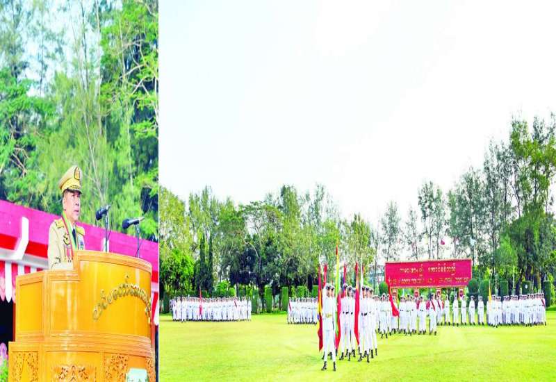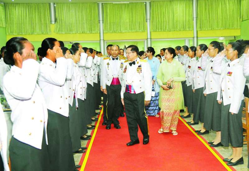 တပ်မတော်၏ အမျိုးသမီးစစ်မှုထမ်းများ၏ အခန်းကဏ္ဍကို အားသစ်လောင်းမည့် ဘွဲ့ရအမျိုးသမီးဗိုလ်လောင်းသင်တန်းအမှတ်စဉ် (၁၀) သင်တန်းဆင်းဂုဏ်ပြုစစ်ရေးပြအခမ်းအနားကို ယနေ့နံနက်ပိုင်းတွင် ရန်ကုန်မြို့ရှိ တပ်မတော်(ကြည်း) ဗိုလ်သင်တန်းကျောင်း (မှော်ဘီ) စစ်ရေးပြကွင်း၌ ကျင်းပပြုလုပ်ရာ နိုင်ငံတော်စီမံအုပ်ချုပ်ရေးကောင်စီဥက္ကဋ္ဌ တပ်မတော်ကာကွယ်ရေးဦးစီးချုပ် ဗိုလ်ချုပ်မှူးကြီး သတိုးမဟာသရေစည်သူ သတိုးသီရိသုဓမ္မ မင်းအောင်လှိုင် တက်ရောက်မိန့်ခွန်းပြောကြားသည်။