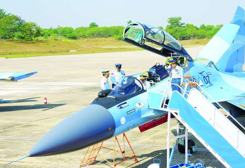 ပြည်ထောင်စုသမ္မတမြန်မာနိုင်ငံတော်၊ တပ်မတော်(လေ)ဖွဲ့စည်းတည်ထောင်မှု (၇၆)နှစ်မြောက် နှစ်ပတ်လည်နေ့အထိမ်းအမှတ် လေယာဉ်များတပ်တော်ဝင်ခြင်းအခမ်းအနားကို ယနေ့နံနက်ပိုင်းတွင် နေပြည်တော်လေတပ်စခန်း၌ ကျင်းပပြုလုပ်ရာ နိုင်ငံတော်စီမံအုပ်ချုပ်ရေးကောင်စီဥက္ကဋ္ဌ တပ်မတော်ကာကွယ်ရေးဦးစီးချုပ် ဗိုလ်ချုပ်မှူးကြီး မင်းအောင်လှိုင် တက်ရောက်ချီးမြှင့်သည်။
