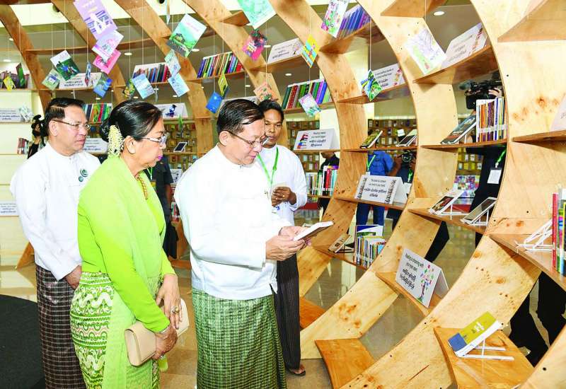 ၂၀၂၂ ခုနှစ်အတွက် အမျိုးသားစာပေ တစ်သက်တာဆု၊ အမျိုးသား စာပေဆုနှင့် စာပေဗိမာန်စာမူဆု ဆုနှင်းသဘင် အခမ်းအနားကို ယနေ့နံနက်ပိုင်းတွင် နေပြည်တော်ရှိ အပြည်ပြည်ဆိုင်ရာကွန်ဗင်းရှင်းဗဟို ဌာန-၂ ၌ ကျင်းပပြုလုပ်ရာ နိုင်ငံတော်စီမံအုပ်ချုပ်ရေး ကောင်စီဥက္ကဋ္ဌ နိုင်ငံတော်ဝန်ကြီးချုပ် ဗိုလ်ချုပ်မှူးကြီး မင်းအောင်လှိုင်နှင့်ဇနီး ဒေါ်ကြူကြူလှတို့ တက်ရောက်၍ စာပေဆုများ ပေးအပ်ချီးမြှင့်သည်။